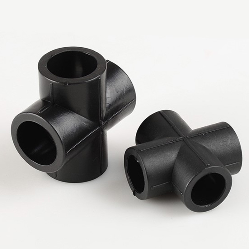 ข้อต่อขวาง HDPE ที่มีเส้นผ่านศูนย์กลางเท่ากันสำหรับเชื่อมต่อท่อที่มุม 90° ในรูปแบบ "+" ช่วยให้มั่นใจได้ถึงการไหลที่สมดุลในขณะที่ยังคงรักษาเส้นผ่านศูนย์กลางภายในและความดันของระบบให้สม่ำเสมอ เหมาะสำหรับการวางท่อแนวตั้ง โดยกระจายการไหลของของเหลวหรือก๊าซอย่างสม่ำเสมอ